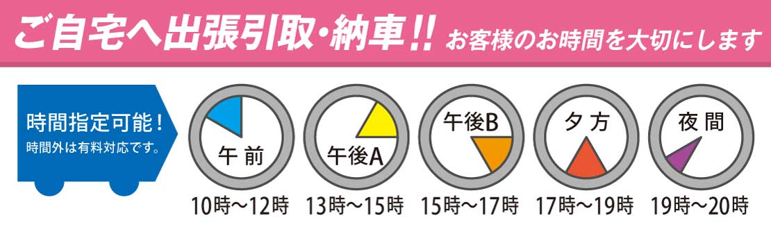東京都・神奈川県(川崎市、横浜市及び周辺地域)・埼玉県(一部地域)へ出張引き取り納車を行なっています。