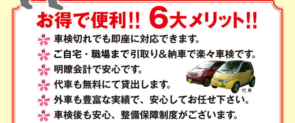 便利で頼れて安心と大変ご好評を頂いている自動車の車検サービスです。