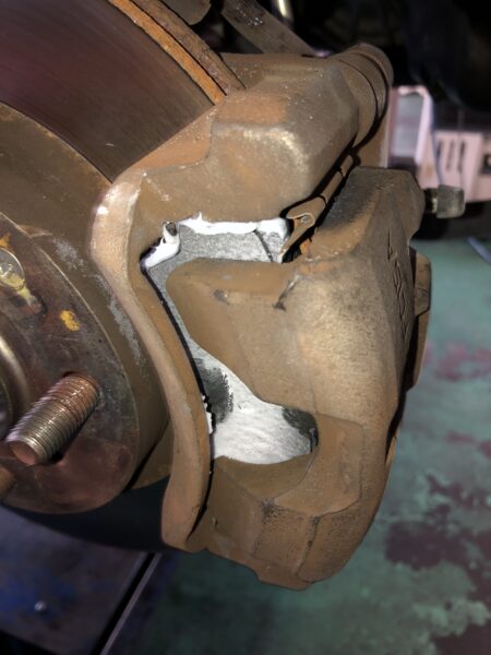 本来、キャリパーのオーバーホールでピストン清掃とシールキットにてゴム部分を交換がいいのですが、予算の問題もあるのでキャリパーに関しては簡易清掃で終わりです。