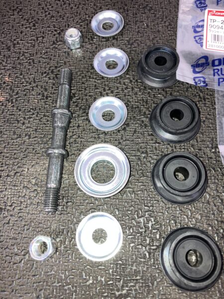 交換時に新品だとゴムブッシュが厚く硬くナットで締め付けるのが大変です。