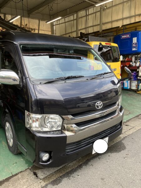 今回の車検整備の車輛は川崎市にお住まいのリピート様でトヨタのハイエースになります。