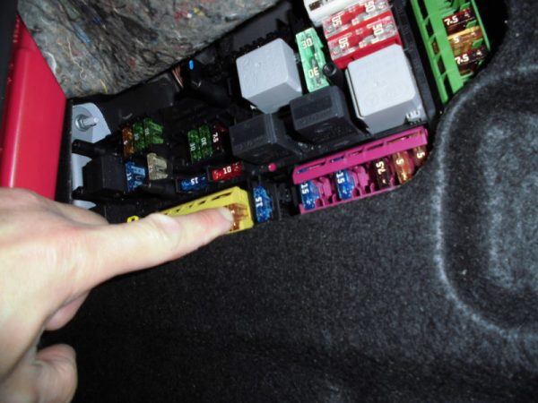 この車にはトランクにヒューズBOXがありますが、よく見るとオレンジ色の5Aが1個切れてました。
