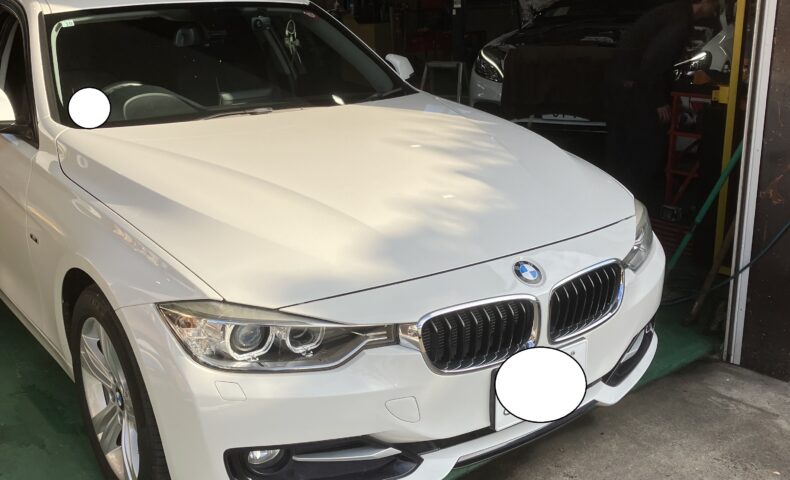 今回の車検整備の車輛は横浜市にお住まいのリピート様でBMWの3シリーズになります。