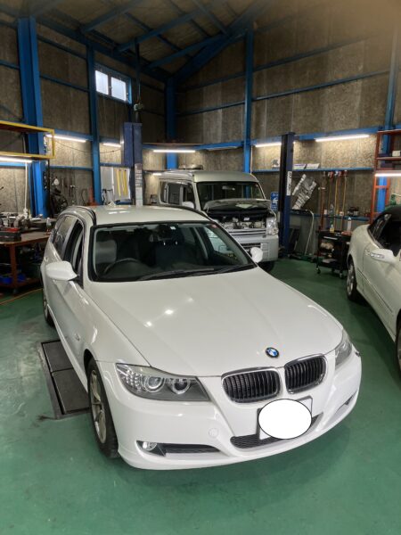 今回の車検整備の車輛は横浜市にお住まいのリピート様でBMWの3シリーズになります。