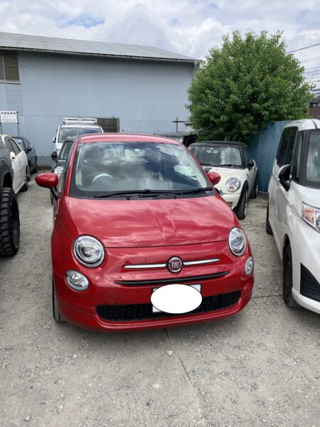 今回の車検整備の車輛は横浜市にお住まいのリピート様でフィアット500になります。