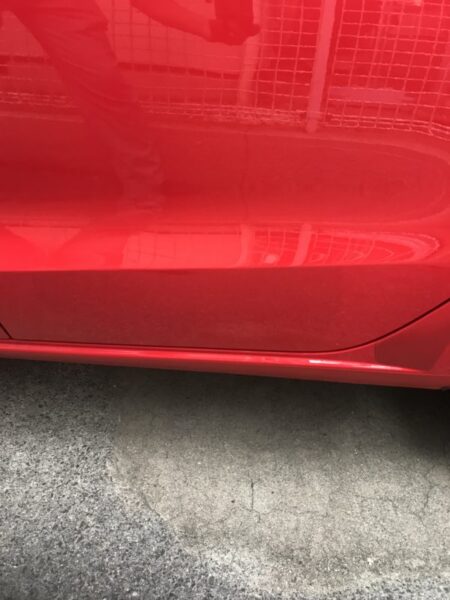 真っ赤なアウディです。この凹み以外は傷なく綺麗な状態です。だからこそこの凹みが目立ってしまいます。