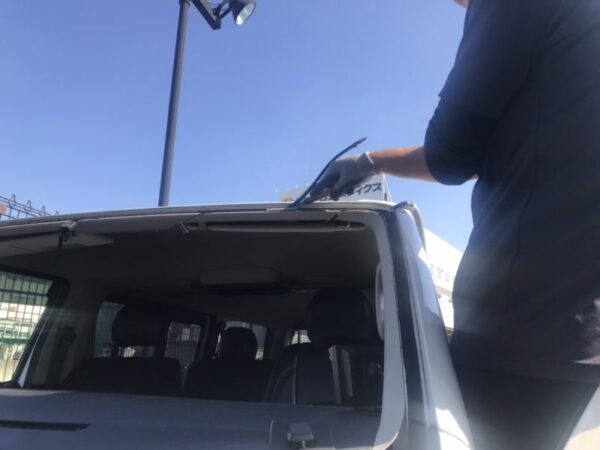 こちらの車はフロントガラスが先日の台風で物が飛んできて飛び石みたいに数か所傷がついているので交換(リペア不可能なため)することに。