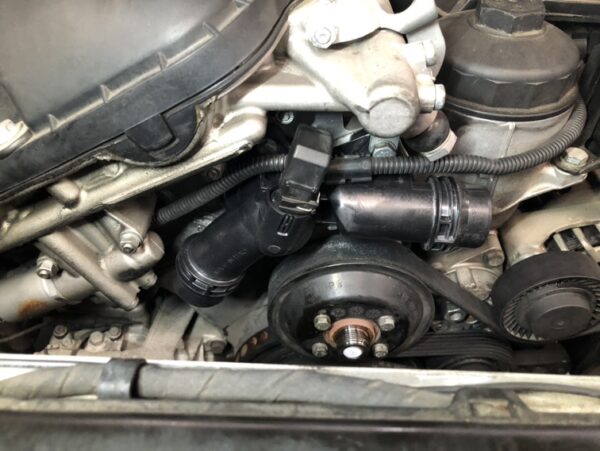 まずサーモスタットを取り外すためにファンとシュラウドが邪魔です