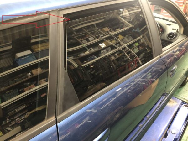 右後ろの窓ガラスなのですが車両をお預かりする際に後ろの窓ガラスが少し開いていることに気が付き戻そうと動かしても動かず・・・モーターは動いているのに・・・あまり動かしすぎると窓ガラスが脱落するおそれがあるので後は点検させてくださいとなりました。