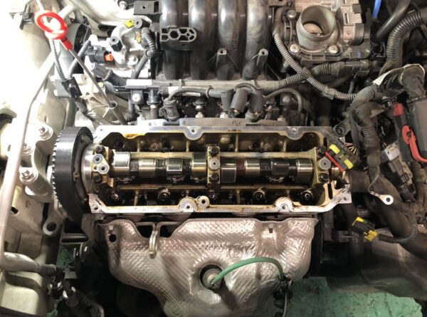 サーモスタットはバッテリーやECUを外しスペースを確保します