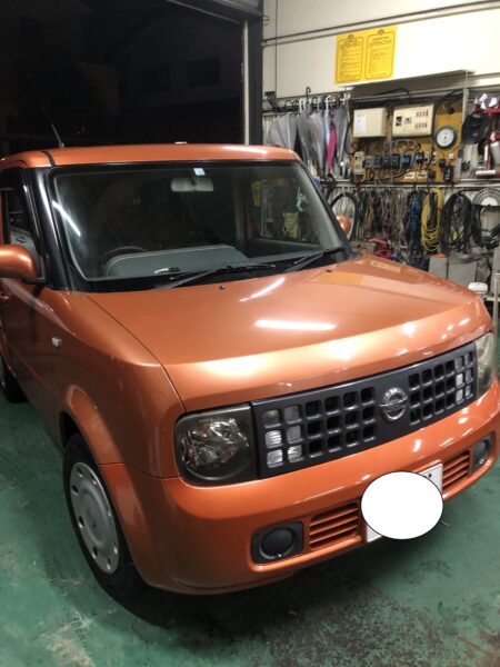 今回の車検整備の車両は横浜市にお住まいのリピーター様で日産のキューブになります。