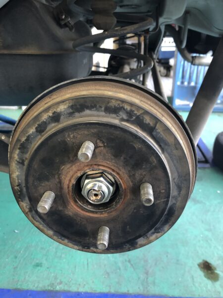 点検をすると左リアからゴーと大きな音がしてました。